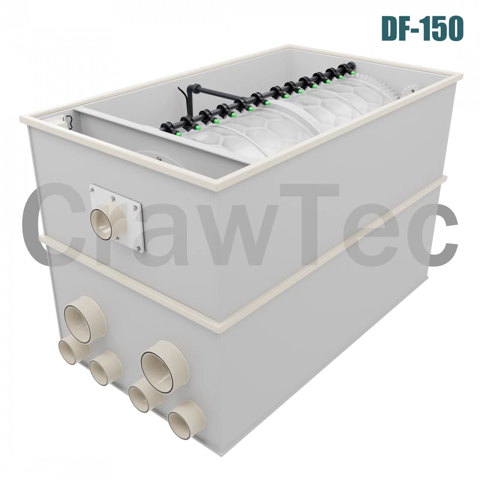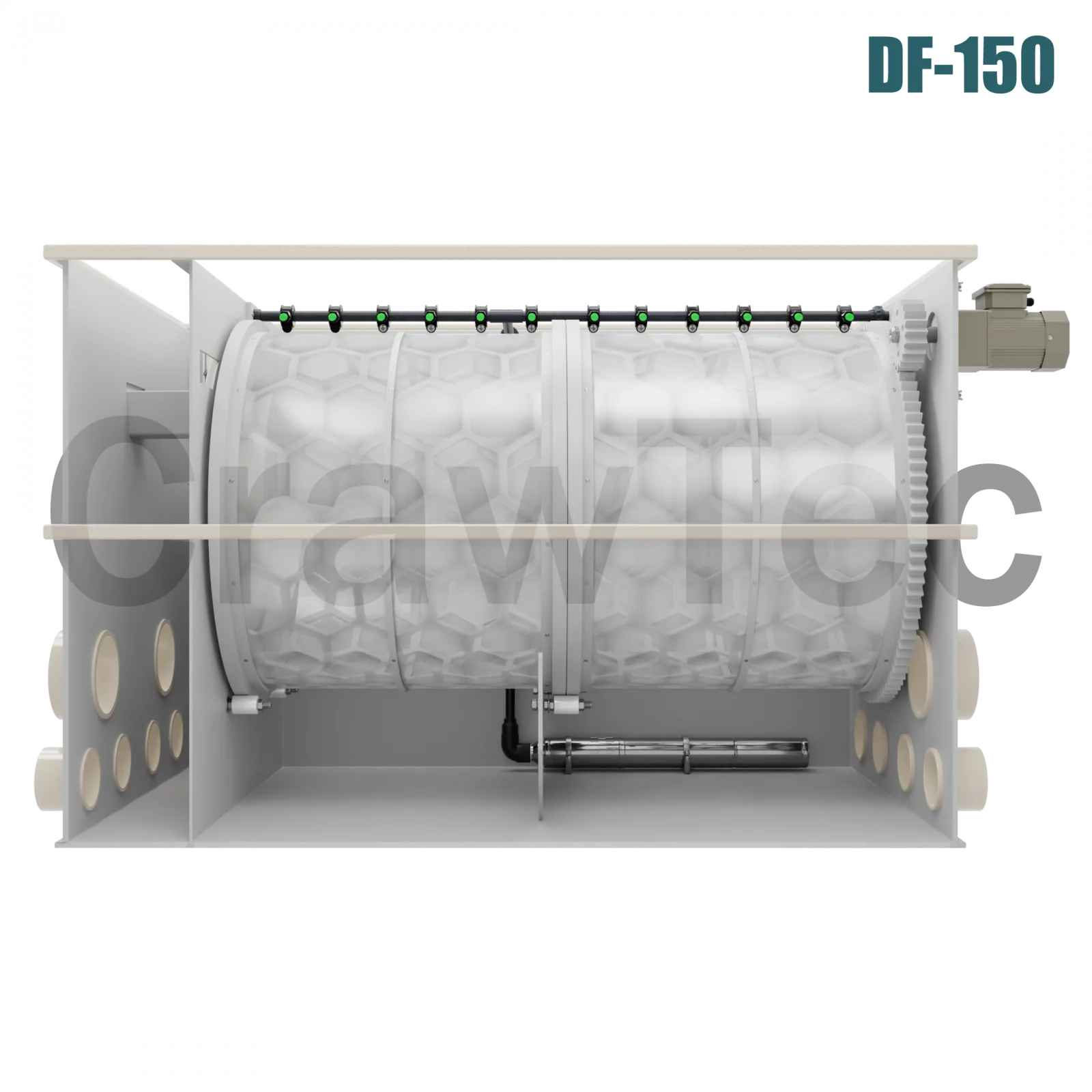 The 150 m³ drum filter is a high-capacity mechanical filtration solution designed for modern recirculating and closed water systems. It effectively removes fine suspended solids and organic contaminants, helping to maintain stable water quality and optimal conditions for fish, shrimp, and other aquatic species.