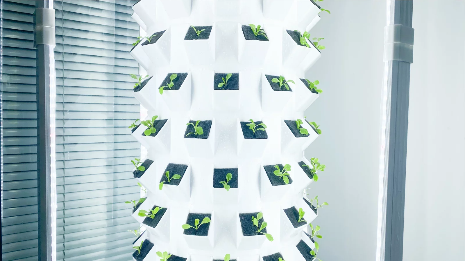 The LYINE 12P system integrates essential components required for continuous and stable operation. A built-in water pump ensures circulation of the nutrient solution throughout the tower, while an electronic timer manages irrigation cycles to maintain consistent moisture levels.
